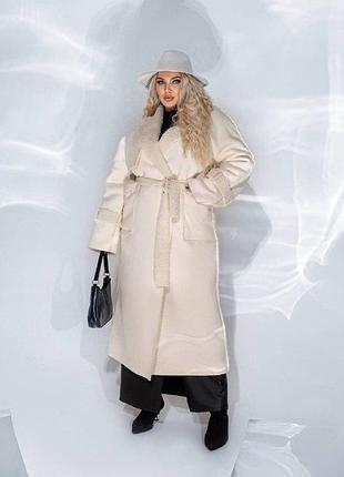 Матеріал: замша на хутрі - баранець. Одягається на запах. Застібок немає. Підвʼязується поясом . Кармани, позаду - розріз - шліця. Патіки на рукавах. Довжина виробу 130 см, довжина рукава від шії 70 см Виміри: 1 р - 42-50- ОГ и ОС 120 см 2 р - 52-58- ОГ и ОС 132 см вол