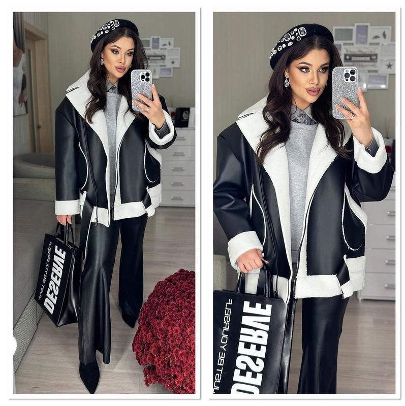 Дублянка в стилі оверсайз. Розмір: 46-52. ОГ до 120 см. Тканина: екошкіра на хутрі, преміум якості. Застібка блискавка. Повністю нова, з біркою.