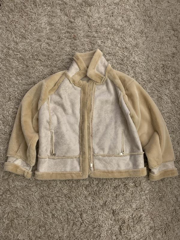 Італійська жіноча дублянка зі штучного хутра. Стан нової речі. Дуже мʼяке якісне штучне хутро. Без підкладки. Колір пісочний. Розмір по бірці XL, але краще буде на L або M (оверсайз). Заміри на фото.