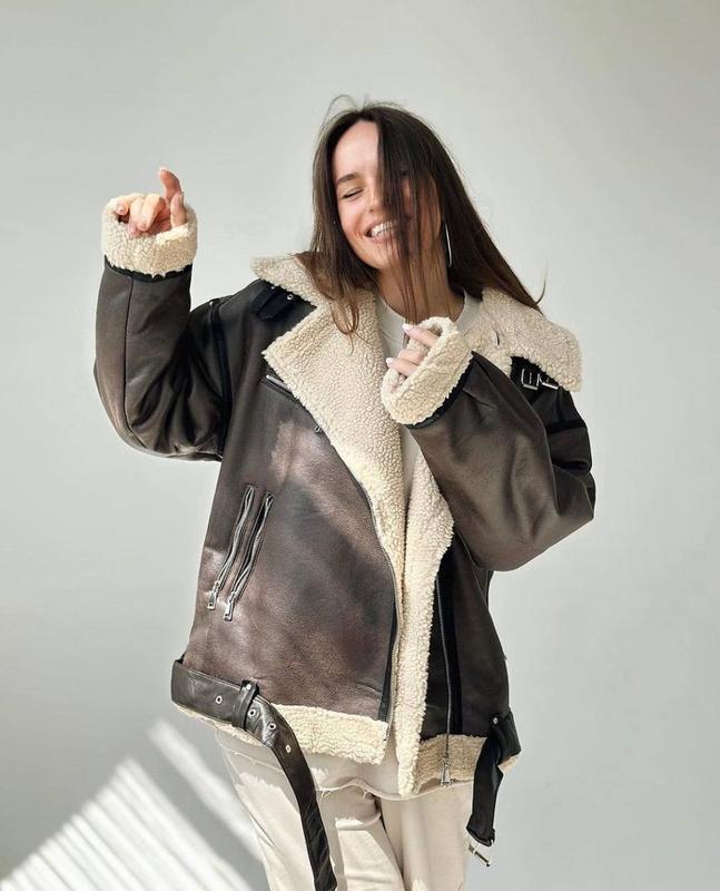 Гарячий тренд цього сезону🙌🏻 Жіноча дублянка на хутрі😍🔥 Мод: 2252 Розмір: хс, с, м Більшемірять на розмір❣️ Тканина: еко шкіра (матова під замш), штучне хутро стриженої вівці