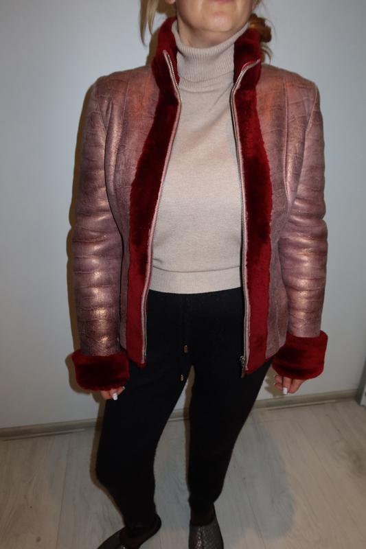 Зимова червона жіноча дублянка з натуральним хутром