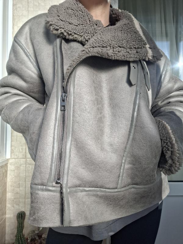 размер указан XL ПОГ64 длина по спинеи65 длина рукав 58 и можно подвернуть цвет бледной серени не коричневый . но ещё подойдёт на L как овэрсайс дубленка искусственная и с наружу и внутри состояние без пятен ,дефектов ,все замки работают . покупала в магазине ( не сэконд ) отправляю по предоплате 250. если вы с Кривого Рога можно подъехать померять .