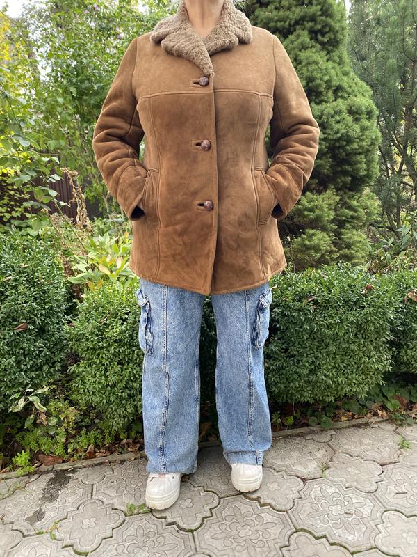 Вінтажна жіноча дублянка коричневого кольору. Я в таких дублянками відпорола рукава , зробила жилетку і дуже зручно на дачі: руки вільні, спинка в теплі. Але ця на мене зараз тісна, можливо хтось собі переробить. Або можна щось інше поробити ( устілки, подушечки для тепла). Хутро досить непогане. Дірок нема. Розмір вказано 54. Я приміряю на розмір 18(44)165 см і мені досить туго. Дивіться заміри і замовляйте безпечну оплату. Заміри: НОГрудей 57 см ( я приміряю на ог 115, дуже тісно) Талія 55 см Стегна 57 см Довжина по спинці 80 см Рукав 63 см Ширина рукава по біцепсу 21 см Якщо вподобаєте, я хочу попередити, що дублянка зберігається на дачі за містом, тому заміри чи відправка в один день не можлива.