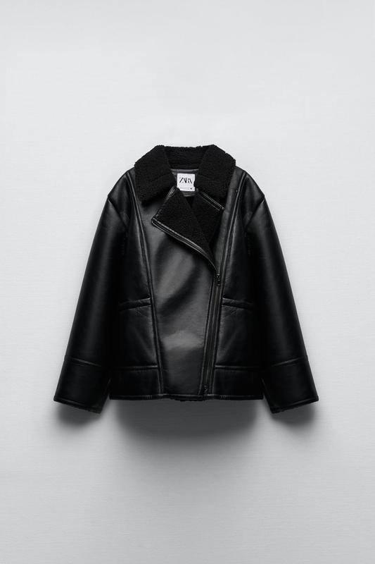 ZARA Жіноча чорна дублянка, еко шкіра Заміри S: бюст 111см, плечі 44см, рукав 58см (у розгорнутому вигляді 62см), довжина 67см •Відправка в день замовлення •накладений платіж 400грн