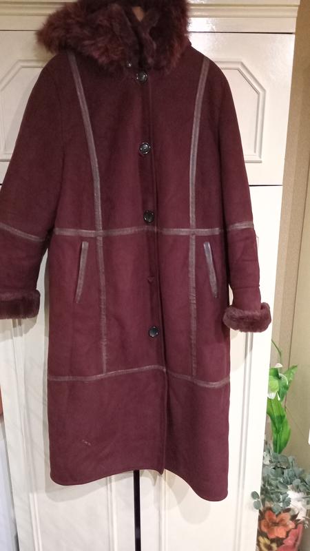 Продам стильную и невероятно теплую дубленку в глубоком винном оттенке. Это идеальная вещь для тех, кто ценит качество, комфорт и классический стиль в верхней одежде. Почему эта дубленка заслуживает вашего внимания: Настоящее качество: Рич добротная, имеет ощутимый вес (тяжеловатая), что гарантирует отличную защиту от ветра и сильного мороза. Она не продувается и отлично держит форму. Эффектный дизайн: Насыщенный бордовый цвет в сочетании с контрастными вставками из эко-кожи делает силуэт стройнее и выразительнее. Максимальный уют: все изделие внутри утеплено густым искусственным мехом. Капюшон глубокий, с пышной каймой из натурального меха- можно смело ходить без шапки. Капюшон на гудзиках. Практичность: Рукава с меховыми манжетами, длину которых можно легко регулировать под свой рост, просто подвернув их. Характеристики: Материал: Качественная эко-замша (дубляж) + густой искусственный мех. Цвет: Марсала / Бордо (очень благородный и немаркий). Длина: Меди (закрывает колени, что очень важно для сохранения тепла зимой). Застежка: Надежные крупные пуговицы. Карманы: Два удобных врезных кармана по бокам. нюансов). Замеры (сжатые по внешней стороне изделия): Длина по спинке: 121 см Ширина в плечах: 50 см ПОГ (от подмышки до подмышки): 65 см ПОС (полуобхват бедер): 70 см Длина рукава (макс): 72 см (можно подкатить)