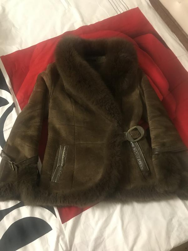 Дефекти на фото під рукавами мєх прим'ємств , не пухнастий , кишені протерта шкіра , але виглядає так ніби так має бути,}. Довжина рукава 62 см Грудей 49 Довжина по спині 64