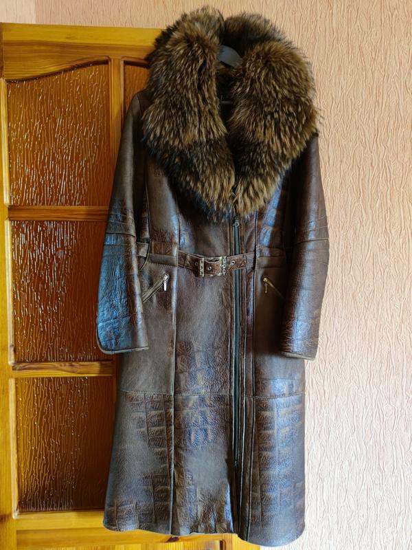 Дублянка коричнева . Туреччина.,дуже тепла!! Вся натуральна! Цигейка , комір єнот .В ідеальному стані!!! Розмір 46/48 Довжина 113, ПОГ 50, ПІТ 44, ПОБІДИ 55. Довжина рукава від плеча 65, плечі 44