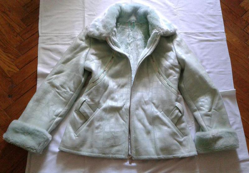 Жіноча або підліткова дублянка. Лежала більше в шафі. Одягалася 5-6 разів. Є нюанси, місцями потріскалися вставки з штучної шкіри - видно на фото. Без капюшона. Є пояс. Стан ідеальний. Розмір 44-46. Колір м'ятний, світло-бірюзовий.