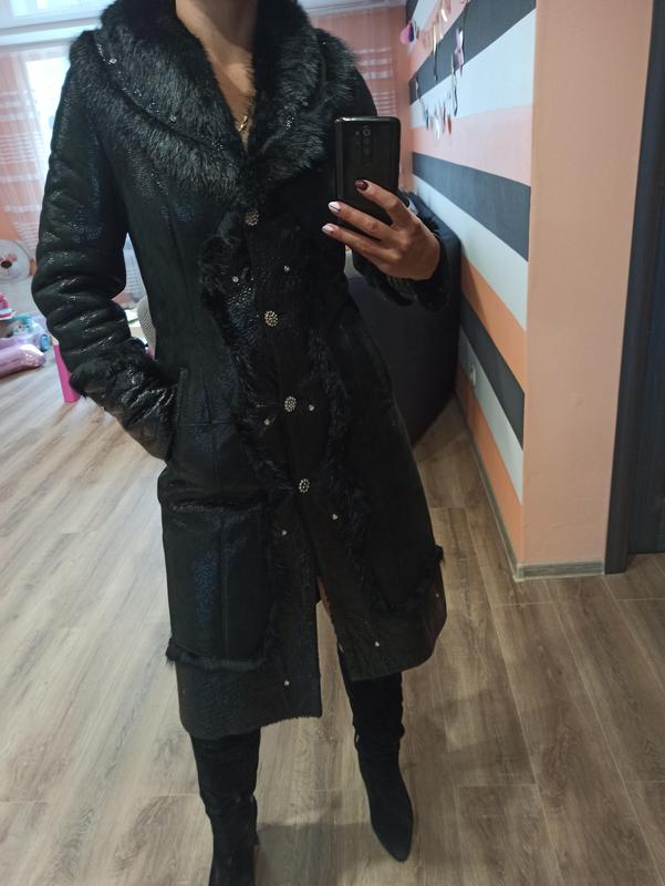 Повністю натуральна дублянка. Всередині Цигейка. Воротнік та оздоблення на рукавах з норки. Дуже гарна ошатна та тепла, підходить під взуття як на високому, так і на низькому ходу. Нажаль після декрету стала трохи замала.