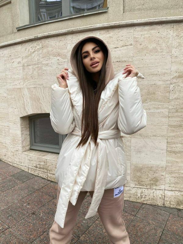 Мод 319 КУртка ковдру Плащівка +наповнювач силікон 200 Кольори бежевий, чорний,молоко Розмір універсальний Довжина-70см Рукав-60см Обхват-125
