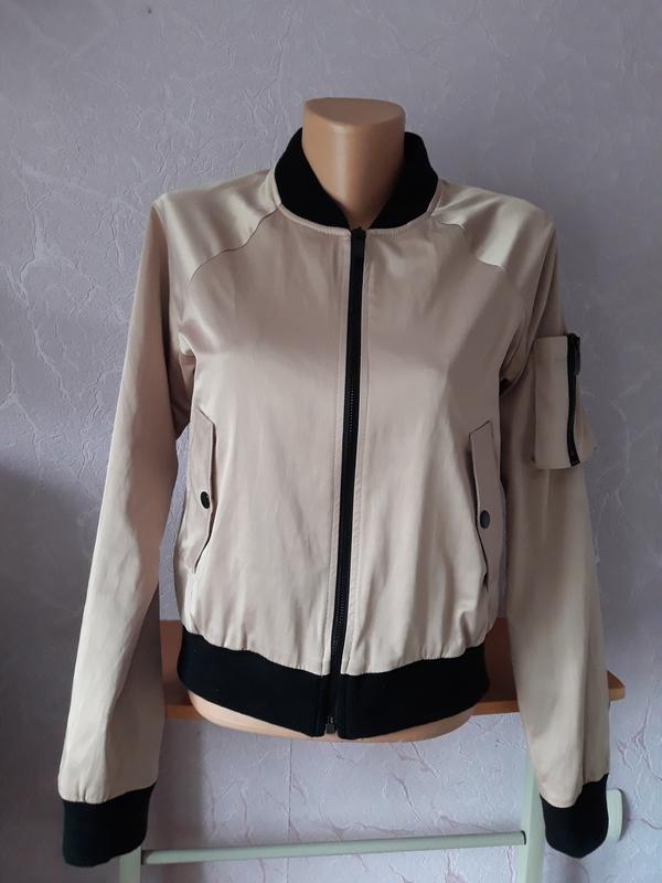 Модна коротка куртка, розмір 38.Довжина 53 см, довжина рукава від шиї 73 см, в грудях 49 см, ширина гумки внизу 41 див. Виробництво Туреччина.Одягнена кілька разів