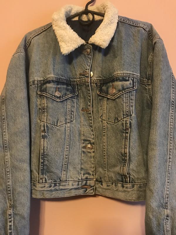 Укорочена шерпа правильної довжини блакитний денім Довжина 47 см Рукав 55 см Груди 52 см Плечі 52 см