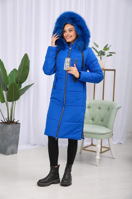 - маломірить на розмір - Безкоштовна доставка - Виробник - Україна - Сезон - Зима - Тканина - плащівка «КАНАДА» (не продувається і не вбирає вологу) - Утеплювач - тинсулейт 250 (штучний пух) - (Новий утеплювач високої якості), м'який, повітряний, простий у догляді. - Підкладка - 100% кольоровий сатин - Капюшон - відстібається - Хутро -- натуральний песець, що відстібається, хвостова частина - Манжет - трикотаж - Колір - електрик довжина 101-102 см, рукав 64 см На сьогоднішній день у сучасному світі до верхнього одягу високі вимоги. Одяг повинен бути одночасно красивим і зручним. Теплий та практичний. Пропонуємо до вашої уваги фасон з нашої нової колекції жіночого зимового верхнього одягу. Це довге зимове пальто жіночого приталеного силуету. Зшита куртка із високоякісних матеріалів, від турецького виробника. Тканина не продувається і не вбирає вологу. Утеплювач - тинсулейт. Це найсучасніший утеплювач найвищої якості. У куртці використовується найновіша, стильна фурнітура виробництва Туреччини. На лівих грудях нашита декоративна блискавка, з якої пришита чорна стрічка зі світловідбиваючим ефектом і бензиновим відливом. У куртці дві асиметричні кишені на кнопках. Ліва кишеня захована у шов. Права кишеня - прорізна з листочком, яка вниз прикрашена невеликою нашивкою. На правому рукаві світловідбивна нашивка на липучці з бензиновим відливом. Під центральною блискавкою вшитий вітровик, для захисту від вітру. Знизу вироби з боків - блискавки, які можна розстебнути для комфортного пересування та більшої свободи у стегнах. У цій куртці відстібається каптур, регульований шнурком. Виріб можна замовити в таких хутрах: штучна чорнобурка з чорною під галявкою, натуральний хвіст песця фарбований у колір виробу, натуральна чорнобурка, натуральне хутро єнот. Натуральне хутро високої якості від виробника - Фінляндії. Його можна зняти за допомогою блискавки. Всередині рукавів манжети трикотажні, завдяки яким регулюється довжина рукава. #
