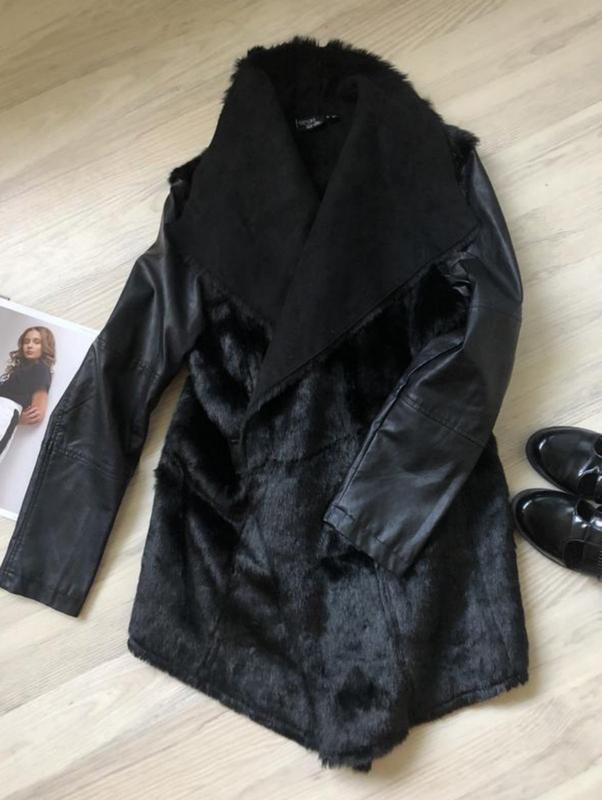 Дуже гарна куртка- шуба з шкіряними рукавами( хутро і шкіра - еко) розмір М, есмара