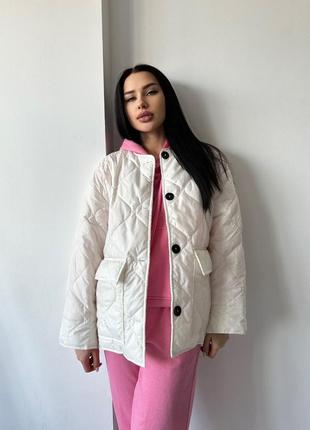 Модна куртка Модель 2516 Тканина: Якісна стьобана плащівка "Лаке", силікон 100 Розмір: 42-46 (оверсайз) Колір: чорний, молочный, малина, сірий, хакі Це просто WOW🤩 Універсальна та трендова куртка сезону🔥Ідеально підійде як під спортивний стиль , так і під класичний 💋 Будь в тренді 🥰💐