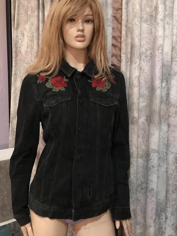 Джинсова куртка з потертостями та дирками. Заміри: плечі 44 см, ПОГ 50 см, рукав 63 см, довжина 65 см. Стан ідеальний, без дефектів і нюансів.