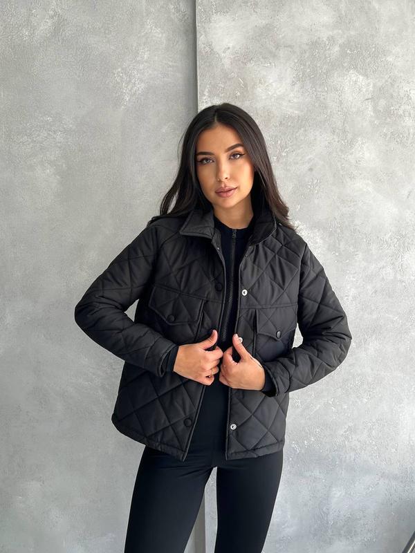 Куртка женская стеганая с накладными карманами. Наполнитель 100 силикон Арт. 10374 ●985 грн. Материал: плащевка Размеры:с,м,л. Размер с Об. гр. 104 см Дл. рукава от шеи 71 см. Дл.изделия 64 см. Размер м Об. гр. 108 см Дл. рукава от шеи 71 см Дл.изделия 64 см. Размер л Об.гр.112 см Дл.рукова от шеи 71 см. Дл.изделия 64 см.