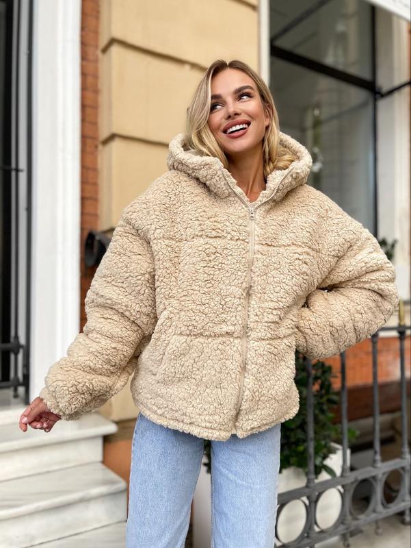 Розкішна хутряна курточка-шубка зі штучного хутра тедді баранчик біла молочна чорна бежева...