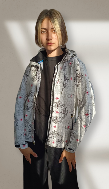Розмір XS-S Довжина - 69 см Ширина ( півобхват ) - 48 см Рукав - 60 см Верх: поліестер Підкладка: поліестер Наповнення: поліестер Країна виробник: Китай Наявний дефект на задній частині рукава невеликі дві плями ( останнє фото в каруселі)