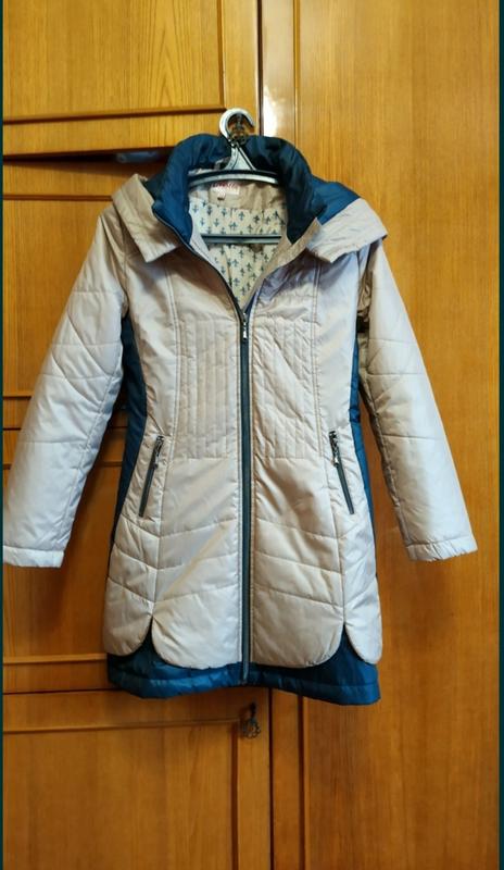 Жіноча демисезонна куртка 44/46р. Стан нової речі. Утеплювач синтепон. Заміри: ширина плеч 36 см, довжина рукава 55см, ПОГ 42см, ПОТ 38см, ПОБ 49 см. Довжина куртки 77 см.