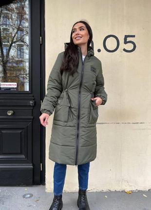 Пальто стьогане з капюшоном та накладными карманами . Манжет рукава на широкий резинці. Кольора: чорний, мокко, хакі Тканина : Плащівка « Канада» водостійка, стьогана, наповнювач силікон 250, рукав наповнювач 200 силікон Розміри : 42-44, 46-48, 50-52, 54-56 Ціна: 1370 грн