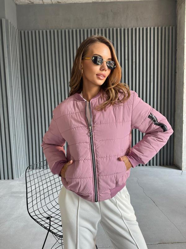 ТОП ПРОДАЖ БОМБЕР Арт R£E/S SV 482 Колір: білий,чорний, рожевий, бежевий Ціна : 950 грн❣ Розміри: S, М, L, XL, 2XL Тканина: плащівка EMI+200-й силікон Опис: Дуже крутий та стильний бомбер з якісної водовідштовхувальної плащівки EMI, наповнювач силікон 200. Бомбер має два бокові кармани та декоратиний на рукаві. Горловина, манжети та низ - турецька рібана. MUST HAVE цієї осені.