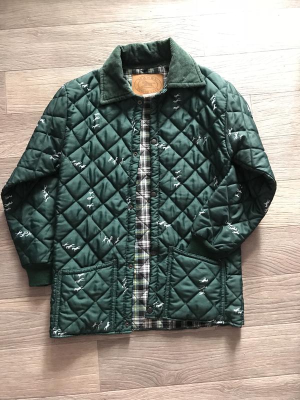 Куртка вільного крою, стегана, легка. Колір - темно-зелений. Заміри: довжина куртки 70 см, напівобхват грудей 47 див., рукав 56 див.