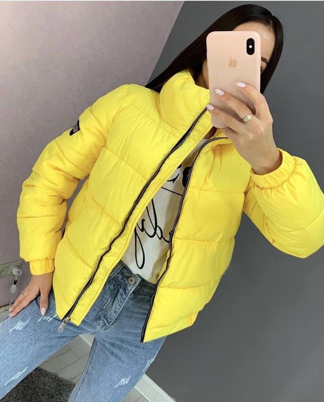 Топові стильні куртки у наявності за дуже гарною ціною! Мод. 601 Тканина плащівка матова щільна Дорогий підклад із малюнком Наповнювач силікон-200 Розміри: 42; 44; 46 Кольори: чорна, кава з молоком, жовта, рожева, блакитна, біла, фіолетова, морська хвиля. На рукавах нашивки «шеврони» написи як на фото Довжина виробу по спинці – 60 сантиметрів. Довжина коміра – 12 сантиметрів Довжина рукава - 63 сантиметри