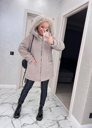 Куртка штучне хутро овчина Хутро високої щільності, дуже тепле, на підкладці. Теплий високий ворот, що захистить від вітру та холоду. Подвійний капюшон. Дві робочі кишені. Ідеальний варіант під джинси, брюки, лосіни, спідницю - напів класичний варіант на кожен день.burda Розміри: 50-52, 54-56, 58-60 Заміри на останньому фото! Кольори: сірий, мокко, чорний, блакитний Ціна: 1410 грн