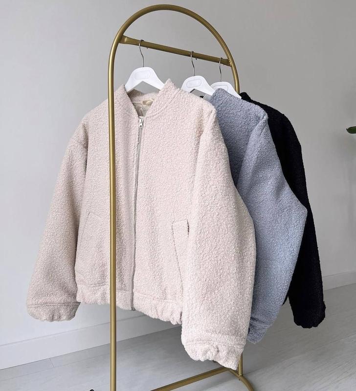 Бомбер ▪️Розмір: 42-44, 46-48 ▪️Тканина: букле баранчик+підклад ▪️Колір: чорний, молочний, сірий