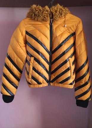 Яскрава курточка, в чудовому стані, утеплена, капюшон прикрашений натуральним хутром.Єдиний недолік- трохі затерті трикотажні манжети. Ідеально буде сидіти на розмірі S, на М ці, треба міряти. Фото реальні, на моделі, нажаль, фото немає