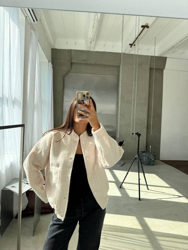 Размер: 42-44, 46-48 Тканина: вовна букле (Баранчик) Цвета: черный, серый, бежевый, молоко Невероятно крутой Бомбер, с карманами, застегивается на кнопки, очень удобная и стильная новинка Без подклада