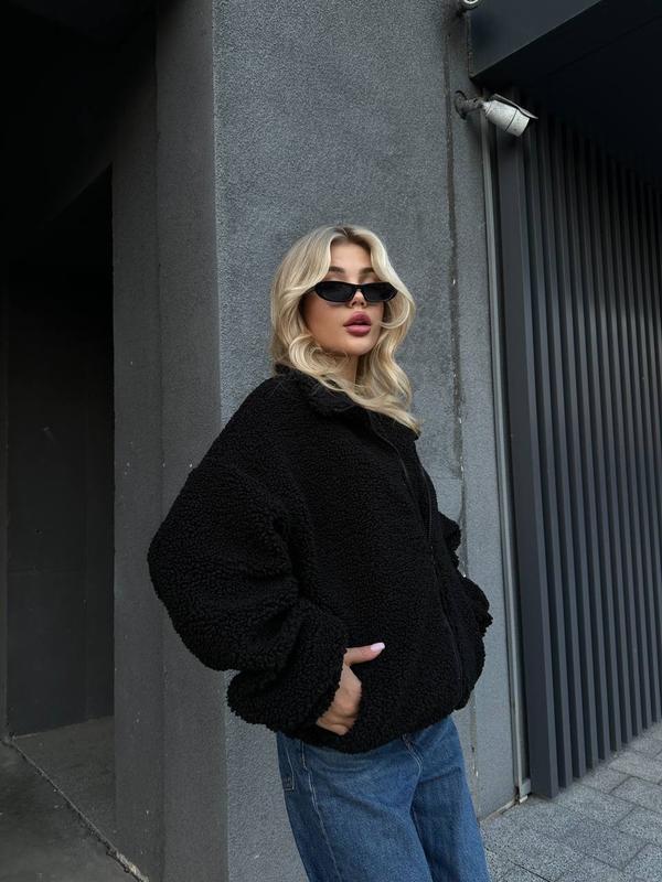 Бомбер виготовлений із матеріалу "хутро баранчик" з підкладкою, що забезпечує тепло та комфорт у холодну пору року. Доступний у стильних кольорах: чорний, молочний та шоколад. Розмірний ряд: 42-46, що дозволяє вибрати підходящий варіант для різних типів фігури. Цей бомбер стане модним і практичним елементом вашого гардероба.