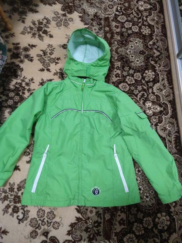куртка вітровка на підкладці, п.о.г.57 см п.о.б.60 см, плечі 47 см, рукав 62 см застібаєиься на липучку,капюшон ховається в воротнік