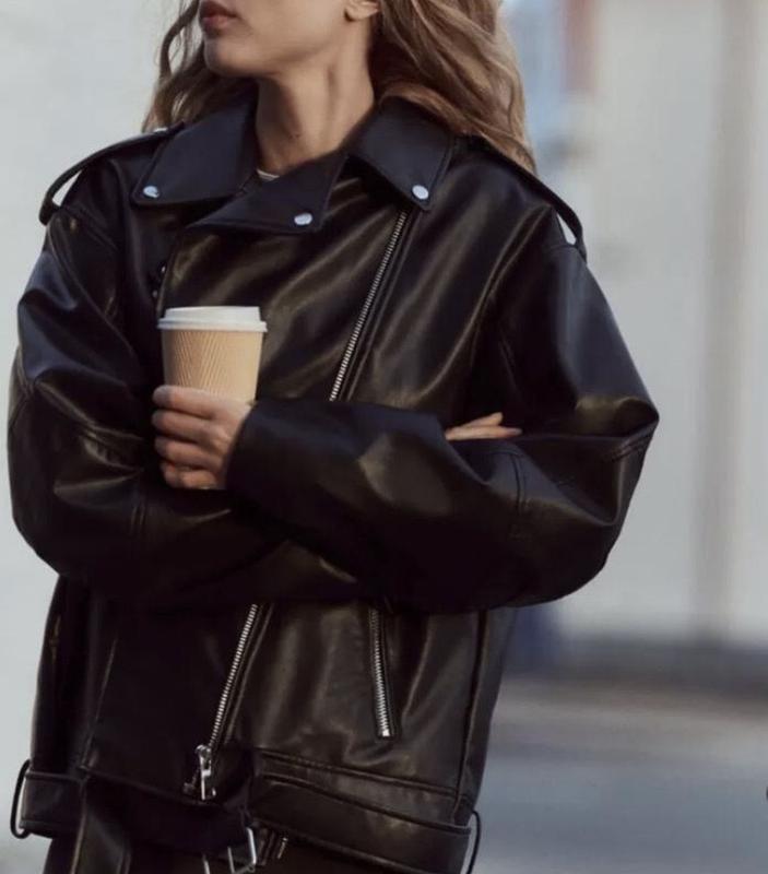 Матеріал: еко-шкіра преміум якості. Посадка: оверсайз. Металеві бігунки та кнопки сріблого кольору. Стан 9/10 Розмір від XS до M