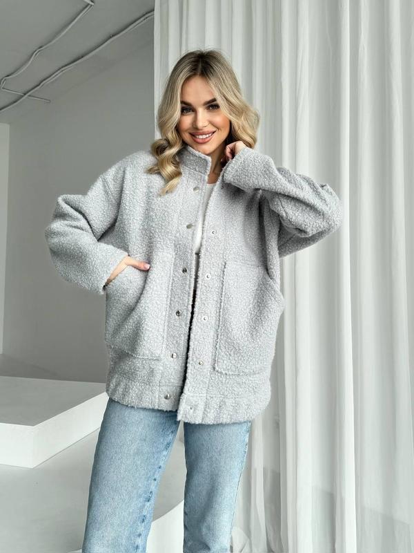 Бомбер арт. ann. 1586 Розміри: 42-44, 46-48, 50-52 Матеріал: букле баранчик Кольори: чорний, сірий, бежевий, білий, графіт, кавовий, рожевий, блакитний Уточнення до вимірів: низ бомбера на резинці, що тягнеться на 20 см (р.42-44 до 116 см, р.46-48 до 120 см, р.50-52 до 124 см) 💰Ціна: 960 грн