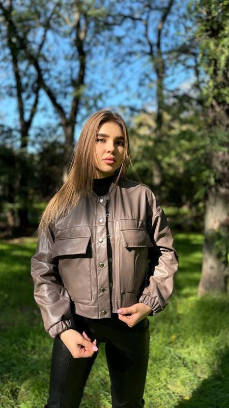 Бомбер з екошкіри на велюрі