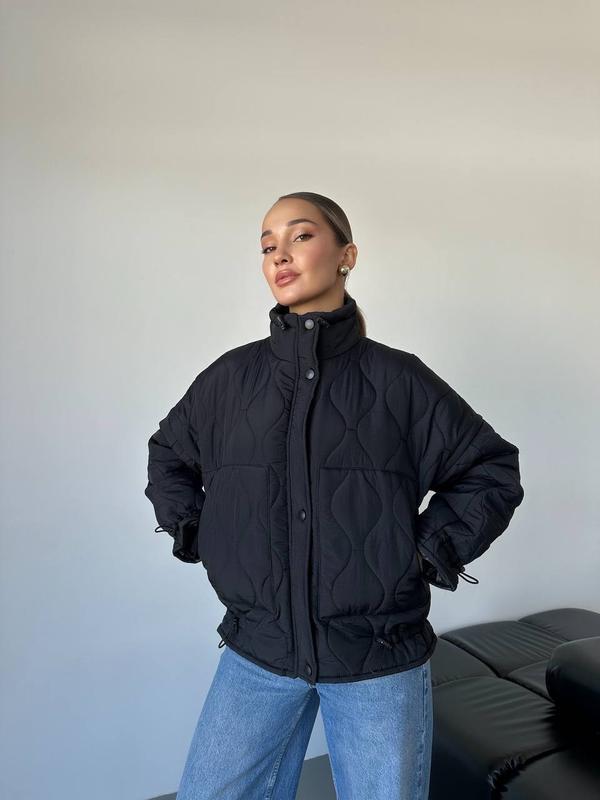 Курточка в стилі Зара мод:215 дн розмір : універсал (42/46) тканина : водовідштовхувальна, непродувна плащівка жатка + підкладка + 200 силікон колір : чорний заміри: ▪️ОГ-115 ▪️довжина по спинці -59 ▪️довжина рукава -70 курточка вільного крою , зі спущеною лінією плеча ,низ та рукава на резинці з фіксатором , що дозволяє коригувати ширину виробу , Курточка на блискавці та кнопках ФОТО РЕАЛ 🛒ВІДПРАВКА протягом 3-7 робочих днів‼️