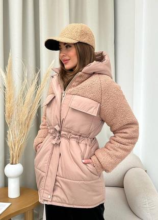 Куртка арт. vm. 0123 Ткань: качественная плащевка производство Турция + мягкий мех барашик Турция Наполнитель: силикон 250. Рукав тоже утеплен силиконом. Размер: 42-44; 44-46; 46-48 Цвет: бежевый, черный, молоко, мокко Цена дроп/опт: 1300 грн