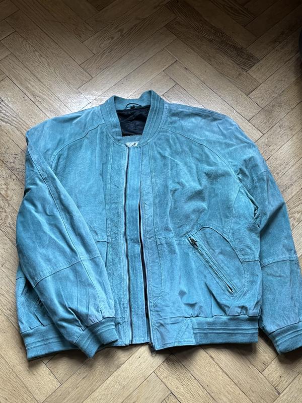 Неймовірного кольору шкірянка (нажаль фото не передають цього), в дуже гарному стані. По бірці розмір L, але гарно сяде і на М(оверсайз) .2 кишені всередині і 2 зовні.
