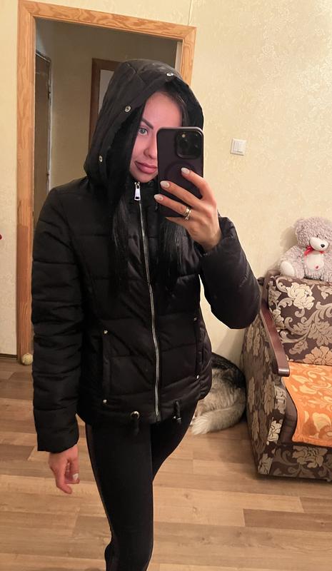 Осіння куртка, має кишені, прикрашена камінчиками біля кишень. Польський бренд. Має дефекти, останні два фото, маленька дірочка на плечі (там ще видно білу нитку, але це фабрична) також треба приклеїти залізний кружечок внизу там де затягується. На капюшоні є ґудзики, але хутра немає, можна їх прибрати. Потребує прання. Розмір вказано m, але потрібно брати на s
