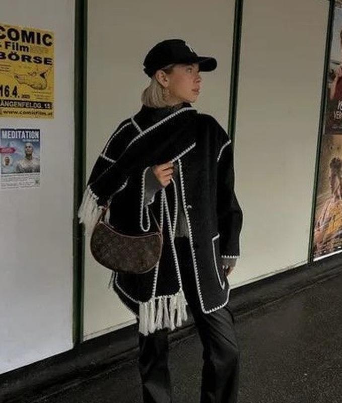 Жіноче чорне пальто з шарфом. Виглядає дуже елегантно)) Заміри S: бюст 118см, д.рукава 51см, плечі 60см, довжина 73см М: бюст 124см, д.рукава 52см, плечі 61см, довжина 74см •Відправка в день замовлення •В наявності Накладений платіж 350грн