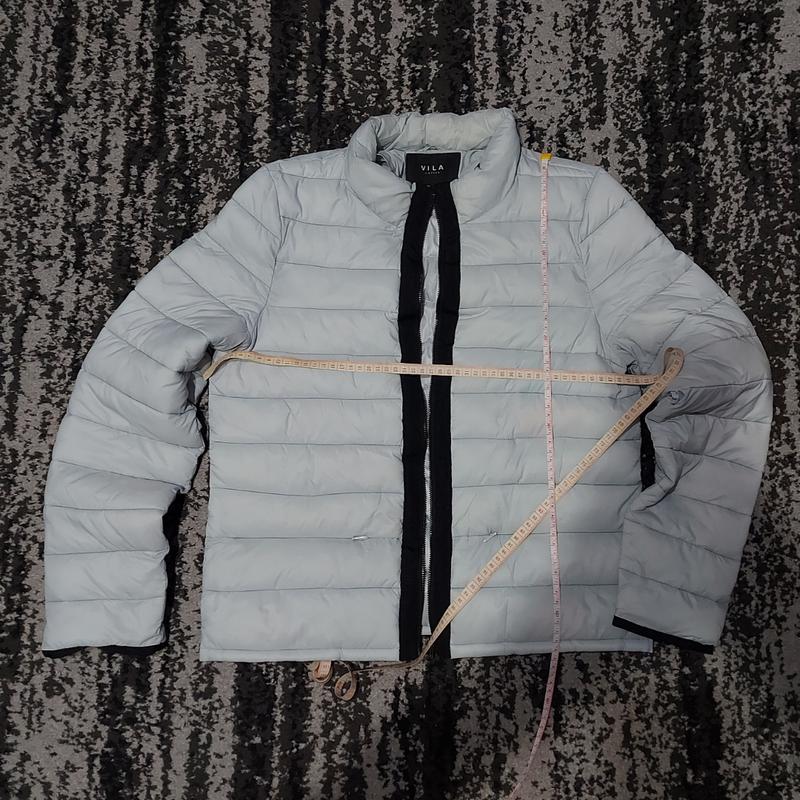 куртка в хорошем состоянии, по бокам черные вставки, свет голубого цвета, полуобхват комди 50, длина 54
