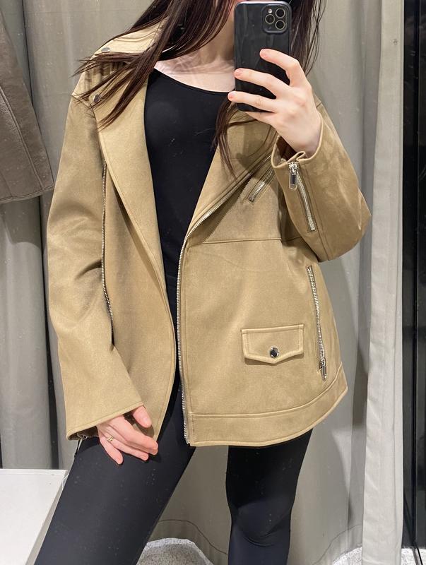Ціна 2850 Вона ідеально виглядає на розмір XS - фасон майже всім може підійти! Прямий крій ! Всім серцем раджу !⭐️ 📌На моделі розмір XS. Оверсайз модель. Підійде до розслаблених образів !📌 Куртка з відкладним коміром і довгими рукавами, закінчена металевою блискавкою. Передні кишені на блискавці. Перехресна застібка спереду на блискавці 3046/067