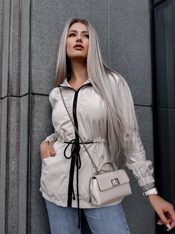 Вітровка Розміри: 42-44, 46-48 Тканина: щільна плащівка CANADA(без підкладки) Кольори: Світло-бежевий Куртка-вітровка прямого крою з водовідштовхувальної плащової тканини, на блискавці зі зручним капюшоном-стійкою та накладними кишенями.