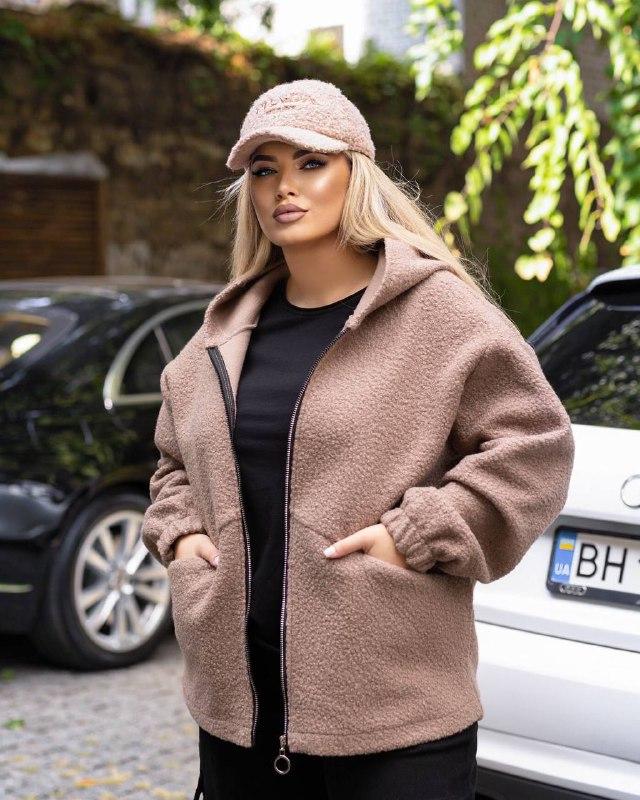Тканина:барашек на кашемірі Розм:52/54,56/58 Колір: чорний,беж Тепла курточка з капюшоном,застібка -блискавка,з карманами,без підкладки. ———————— Заміри: 52/54: ОГ 128,ОС 128,рукав від горловини 75,довжина 72 56/58: ОГ 142,ОС 142,рукав від горловини 76, довжина 73