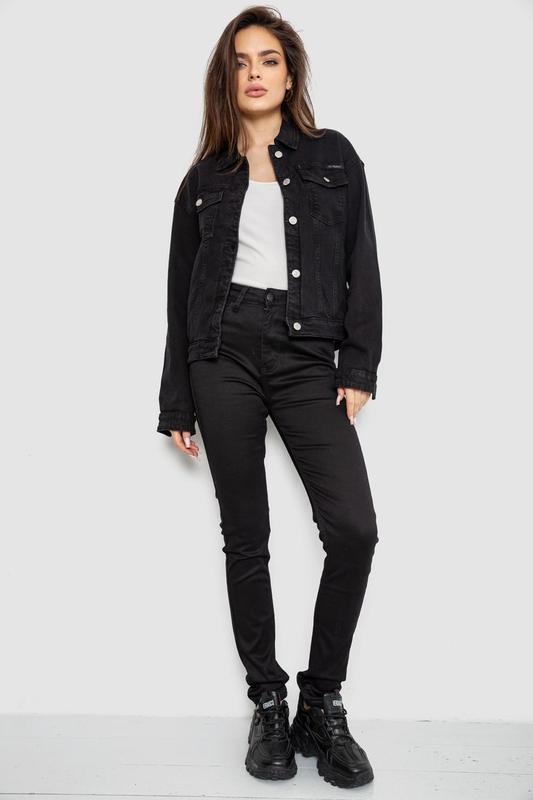 Черная укороченная джинсовка на пуговицах, с карманами Состав: 97% хлопок, 3% лайкра