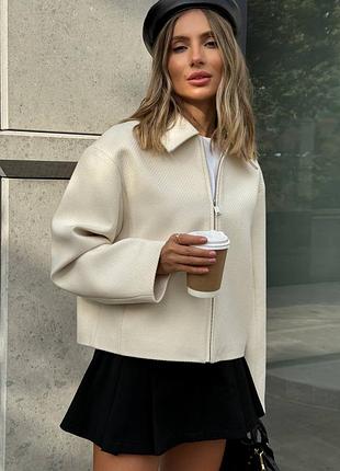 Стильний бомбер на блискавці Стилізуйте його з класичними брюками, джинсами або спідницею. Завдяки вільному крою та універсальному кольору бомбер буде прекрасно поєднуватись з будь-яким одягом. Розмір: over size Матеріал: структурний кашемір (60% вовна 40% поліістер) , жаккардова підкладка Утеплювач slimtex +200грн ( під замовлення)