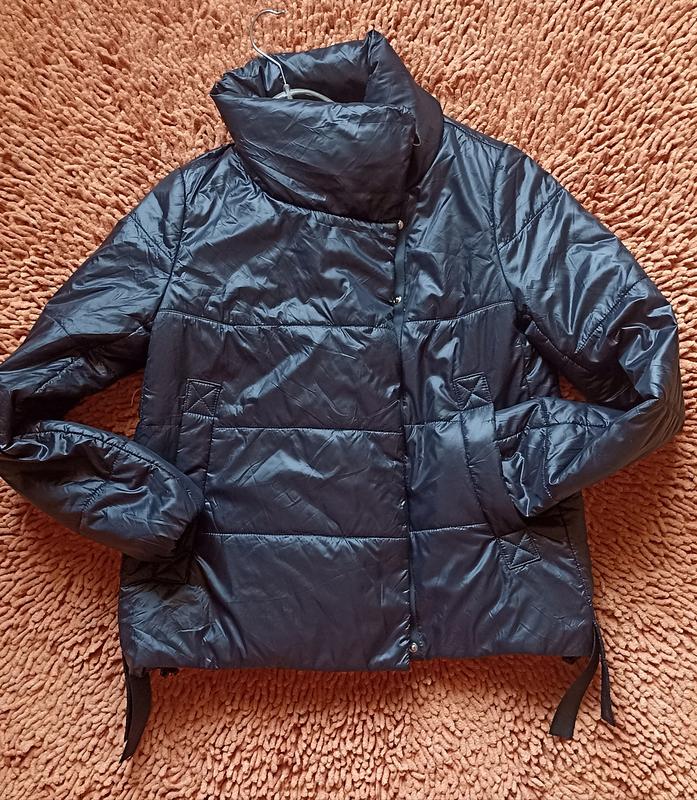 чорна куртка, дуже приємна до тіла, застібка кнопки .без капюшона по низу є затяжний шнурок. розмір 38європ. це 44 Україна. виробник фірма origa. якість люкс. довжина 62см. обьем грудей 96см. комір стійка.