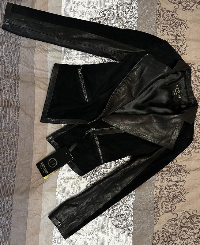 Куртка з натуральної замші і шкіри. Розмір s, легенька, коротенька. Купляла собі, але не підійшов розмір. ОГ до 85 см., НОВА